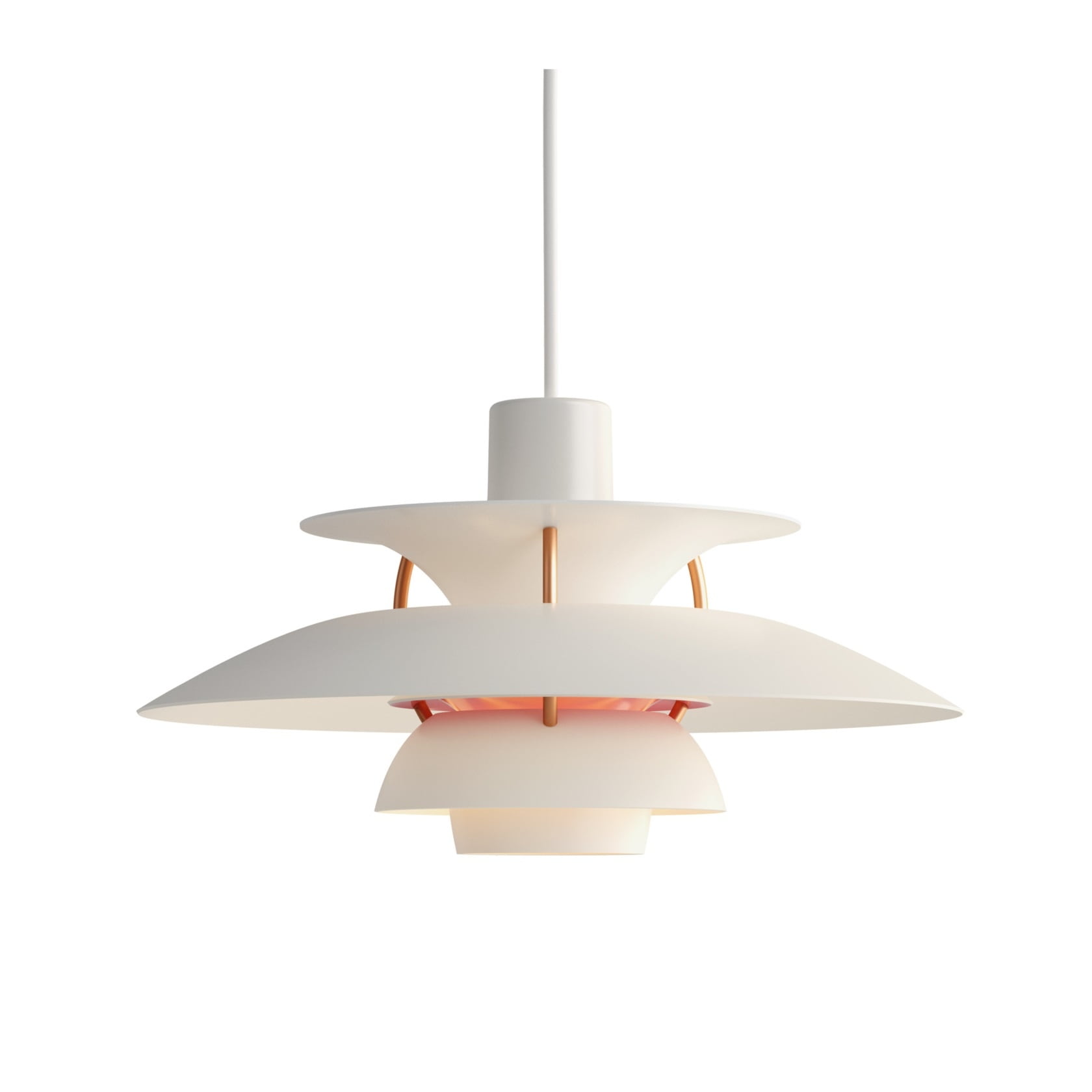Dopřejte si tento legendární design z roku 1958 v exkluzivním bílém provedení v o něco menší variantě a přineste do svého domova osvětlení, které nejen září, ale také vypráví příběh o designu, který překračuje hranice času i prostoru – to je to, co dělá PH 5 skutečnou ikonou. průměr 30 cm / výška 16,3 cm Stínidla jsou vyrobená z matně lakovaného hliníku.