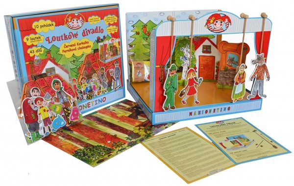 Loutkové divadlo inspirované pohádkami Červená karkulka a Perníková chaloupka přináší dětem nejen zábavu, ale i cenný rozvoj řečových a komunikačních dovedností, fantazie a kreativity. Tento loutkový set obsahuje skládací loutkové divadlo, 9 loutek, 5 dřevěných vodicích tyček, lepicí hmotu, 9 rekvizit, 5 scén, 4 scénické doplňky se stojánky a 10 pohádek ke stažení zdarma. Vyrobeno z knihařské lepenky, dřeva a laminovaného kartonu. Podporuje rozvoj jemné motoriky, improvizace a vyjadřování u dětí. Ideální pro společné rodinné chvíle nebo hraní ve školkách a dětských skupinách. Rozměry balení 48 x 26 x 6 cm Vhodné pro děti od 3 let