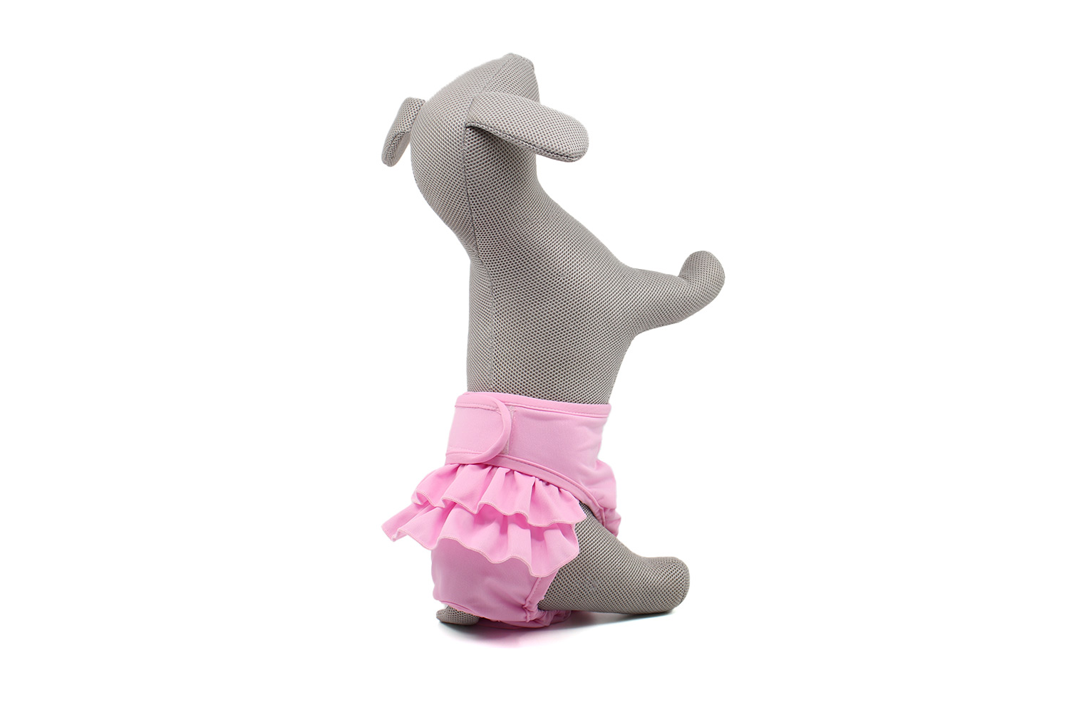 Lucie hárací kalhotky pro psy s volánkem jsou ideálním řešením pro udržení čistoty během hárání vašeho psa. Tyto kalhotky, vhodné pro všechna plemena, nabízejí účinnou ochranu před nečistotami díky svému savému materiálu. Jejich unikátní design s volánky zajišťuje atraktivní vzhled a zároveň poskytuje pohodlí vašemu miláčkovi. Udržují váš domov čistý a bez zápachu. Proč si je zamilujete? Kvalitní materiál: Vyrobené z odolného polyesteru, snadno se perou a dlouho vydrží. Perfektně padnou: Díky suchému zipu a gumičce v pase budou kalhotky vašemu psíkovi perfektně sedět, aniž by mu nějak vadily. Snadná údržba: Stačí je hodit do pračky na 30 °C a máte hotovo! Nepropustná vložka: Kalhotky obsahují kvalitní nepropustnou vložku, která zajišťuje extra ochranu a všechny nečistoty udržuje v kalhotkách. Prodloužený suchý zip: Hárací kalhotky mají prodloužený suchý zip, který umožňuje lepší a pevnější utáhnutí. Tento prvek zajišťuje, že kalhotky krásně sedí i hubenějším pejskům. Šaty nebo kalhotky: Kalhotky jsou vybaveny roztomilými volánky, které jim dodávají vzhled šatů. Tyto volánky přinášejí stylový a roztomilý vzhled bez vlivu na jejich skvělou funkčnosti. Náš speciální tip: Vložte do kalhotek obyčejné hygienické vložky z drogerie. Je to snadné, hygienické a zvýšíte tím absorbci. Udržíte tak svůj domov čistý a vaše nervy v klidu. Jak hárací kalhotky oblékat Rozepnutí: Nejdříve kalhotky rozepněte na jedné straně. Nasazení: Vložte jednu nohu psa do otvoru a potom protáhněte ocásek. Zapínání: Otočte kalhotky kolem boků psa a zapněte je na druhé straně, buď ve slabinách nebo v pase. Je to snadné! Hárací kalhotky stačí rozepnout, provléknout nohu, ocásek a pak je znovu zapnout v pase. Po použití je můžete jednoduše vyprat v pračce. Rada na závěr: Správná velikost: Ujistěte se, že kalhotky vaší fence správně sedí, nejsou příliš těsné ani volné. Doporučujeme změřit obvod slabin v místě před zadníma nohama. Pravidelná kontrola: Pravidelně kontrolujte, zda kalhotky nezpůsobují pejskovi nepohodlí nebo podráždění. Vyhnete se tak tomu, že si bude chtít pejsek kalhotky sundat. Omezení doby nošení: Nedoporučuje se nechat psa v kalhotkách nepřetržitě. Poskytněte mu pravidelné přestávky a využijte je například jako příležitost k venčení. Kalhotky nejsou antikoncepce: Slouží pouze ke zvýšení hygieny a ochraně domova během hárání. Jak používat kalhotky co nejefektivněji? Pro co nejlepší využití háracích kalhotek doporučujeme koupit dva páry kalhotek. Tímto způsobem můžete jeden pár vyprat, zatímco váš pes nosí ten druhý. Tento způsob použití zajistí nepřetržitou ochranu a současně udržuje váš domov v čistotě. Pravidelné praní a střídání kalhotek zabezpečí dodržování hygieny, které můžete ještě zvýšit použitím hygienických vložek. Velikost Obvod slabin S 27 - 40 cm M 34 - 48 cm L 40 - 56 cm XL 44 - 64 cm