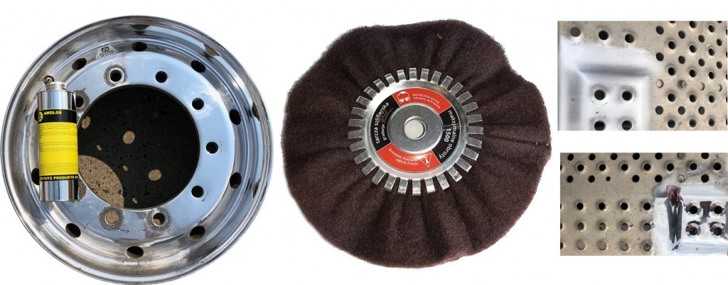 Leštící brusný kotouč se dvěma vrstvami pružné abrazivní netkané textilie je určený pro broušení, odstraňování rzi, sedimentů, barvy, čištění stupátek atd. Leštící brusný kotouč lze použít jako doplněk nebo náhradu za broušení brusným papírem na těžko přístupných místech (např. dutiny v ráfcích, vlnitý plech, žebrování a vlnitých povrchů atd.) před leštěním nebo dokončením povrchu, když chcete získat křišťálový efekt.Určeno pro montáž na leštící zařízení a úhlové brusky se závitem M14 a M16. Kotouče jsou vyráběny ve dvou stupních brusu: 240 a 320 Technické informace: průměr - 205 mmšířka - 25 mm počet vrstev - 2průměr otvoru - 16 mm Postup při leštění hliníkových disků: 1) Hliníková kola nejdříve umyjte 2) Vezměte rotační leštičku a saténový kotouč se zrnitostí 240. 3) Následně použijte saténový kotouč se zrnitostí 3204) Na takto zbroušená hliníková kola použijte nejdříve leštící kotouč 1 FS a Amglos nebo leštící pastu 1 FS5) Jako další krok leštěte pomocí leštícího kotouče 2 SS a Amglosu nebo leštící pasty 2 SS6) Jako poslední použijete leštící kotouč 3 MF a Amglos nebo leštící pastu 3 MF7) Pokud jste využili variantu s Amglosem, nyní již můžete pouze ošetřit přípravkem Hartwachs, pokud jste použili pasty 1FS, 2SS, 3MF nakonec kola vyleštěte přípravkem AMGLOS . 8) Chcete-li, aby nádrž byla delší dobu lesklá, můžete ji ještě ošetřit (zakonzervovat) přípravkem Hartwachs.
