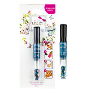 Lak na nehty Lukky 2-v-1 obsahuje lak (6 ml) a třpytky (1,5 g). K odstranění laku není potřeba odlakovač. Lak jde jednoduše sloupnout. Lahvičku nelze vylít. Výrobek je vhodný pro děti od 3 let.