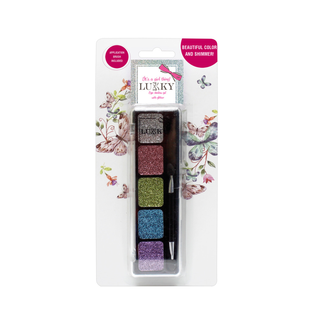 Gelové oční stíny Lukky se třpytkami a štětečkem v 5 různých odstínech. Vhodné pro děti od 3 let.