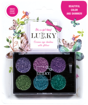 Krémové oční stíny Lukky se třpytkami a štětečkem v 6 různých odstínech. Vhodné pro děti od 3 let.