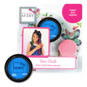 Křída na vlasy Lukky. Křída se snadno nanáší pomocí houbičky a odstraní pomocí šampónu. Vhodné pro děti od 3 let.