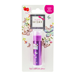 Křída na vlasy Lukky se třpytkami. Křída se snadno odstraní pomocí šampónu. Objem 10 g. Vhodné pro děti od 3 let.