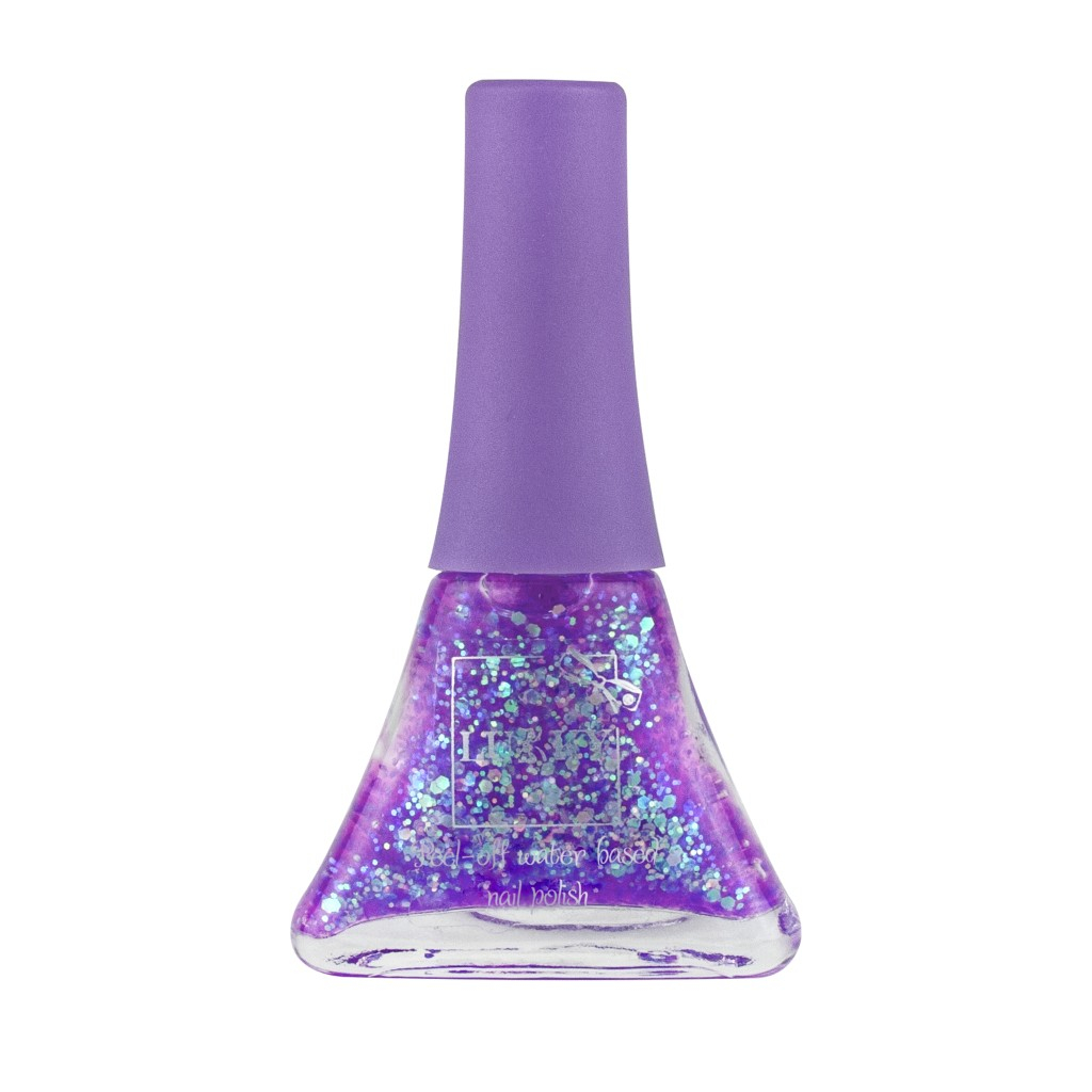 LUKKY slupovací lak na nehty na bázi vody se třpytkami. K odstranění laku není potřeba odlakovač. Lak jde jednoduše sloupnout. Lahvičku nelze vylít. Výrobek je vhodný pro děti od 3 let.