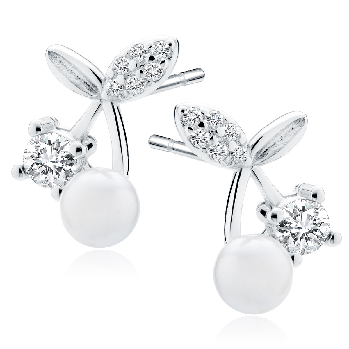 - Náušnice jsou osazeny zirkony a perlou.