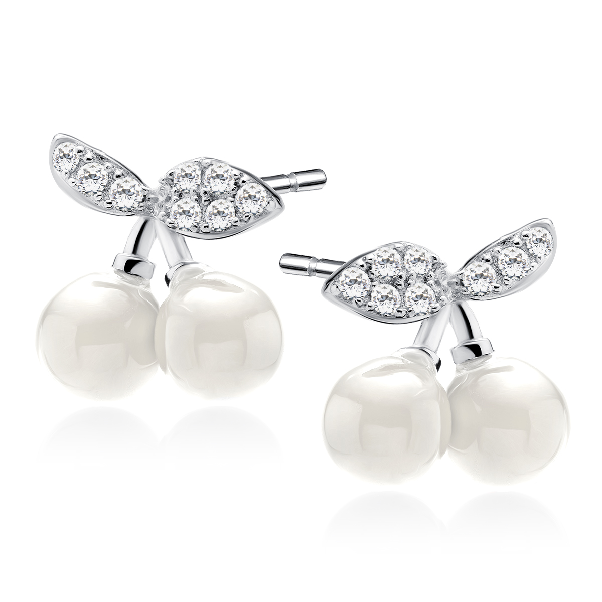 - Náušnice jsou osazeny zirkony a perlou.