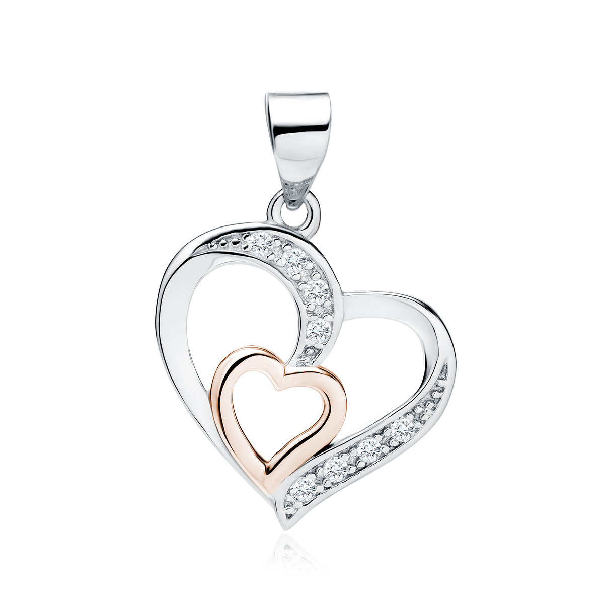 - Šperk je vyroben ze stříbra 925 a malé srdce je pokryto vrstvou růžového zlata.