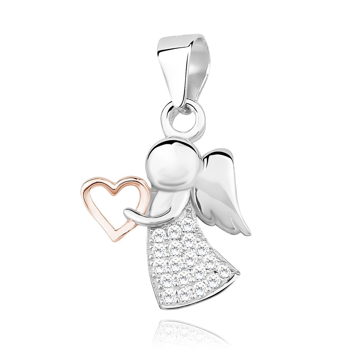 - Šperk je vyroben ze stříbra 925 a srdce je pokryto vrstvou růžového zlata.