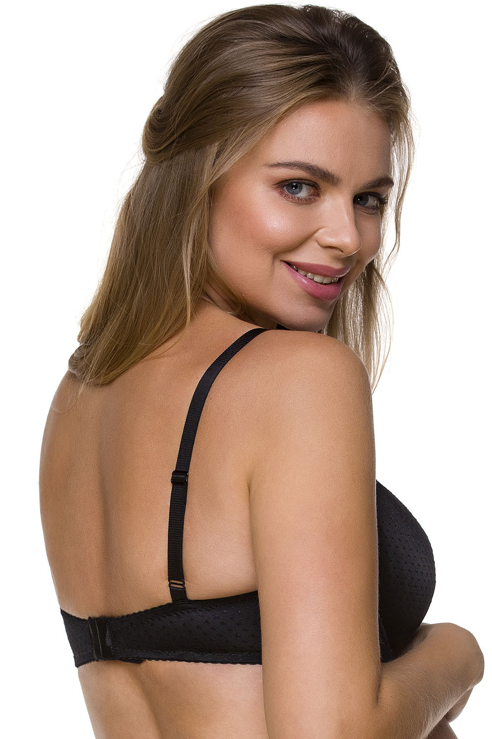 Podprsenka značky Lupo, model 1381, s drátky, které podporují a tvarují prsa. Výrobek má nastavitelná ramínka, která nelze odepnout. Plastové háčky na ramínkách. Zapínání na háčky a očka. Místo zapínání: na zádech. 2 řady svislých výšivek. 3 úrovně vodorovných výšivek. Výrobek je vyroben ze 70 % polyamidu, 15 % elastanu, 15 % bavlny. Těhotenské oblečení. Vlastnosti výrobku: měkký mateřský kojící soft. Prádlo má odepínací košíček.