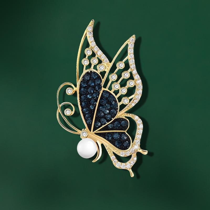 Nadšení v každé milovnici originálně zpracovaných šperků vzbudí tato překrásná brož Raula Gold v podobě motýla, ozdobena bílou shell perlou, jemnými čirými a černomodrými zirkony. Doplňte jí jakékoliv své oblečení a máte jistotu, že budete vypadat neodolatelně. Brož je do detailu propracovaná a firma Éternelle vdechla broži exkluzivitu, kterou podtrhávají detaily s 18karátovým pozlacením. Perla je jedním z nejkrásnějších darů přírody! Po staletí si miliony žen volili přírodní perlové šperky, aby zdůraznili svou ženskost, krásu, půvab a šarm. Brož představuje spojení elegance a unikátnosti, originalita a krása jsou její hlavní přednosti. Ozdobte i vy svou večerní róbu tímto luxusním doplňkem a staňte se hvězdou společnosti. Brož balíme zdarma do pěkné dárkové krabičky a je tak ideálním dárkem pro každou výjimečnou ženu.