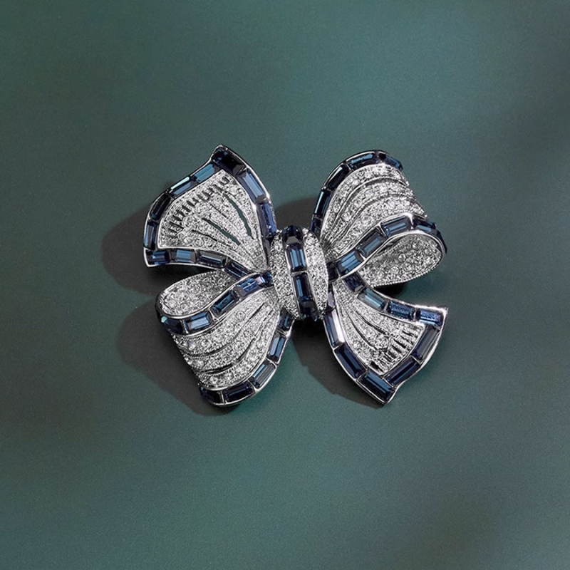 Představujeme vám naši luxusní brož, která je jako sametový večer plný zářících hvězd. Tato brož ve tvaru elegantní mašle je zářícím skvostem, který okouzlí svou krásou a nádhernými detaily. Každý zirkon, který zdobí tuto brož, září jasem, který připomíná noční oblohu. Modré a čirá záře zirkonů vytvářejí kontrast, který dodává broži nádech exkluzivity a noblesy. Tato brož je tím pravým doplňkem pro ty okamžiky, kdy chcete zazářit a upoutat pozornost. Váš outfit se stane ještě výjimečnějším, když si tuto luxusní brož připnete na kabát, šátek nebo šaty. Je to dokonalý způsob, jak vyjádřit svou osobnost a vkus. Ať už ji nosíte na společenskou událost nebo jako každodenní doplněk, tato brož bude vždy symbolizovat vaši eleganci a styl. Buďte středem pozornosti s naší luxusní broží z naší nejnovější kolekce.