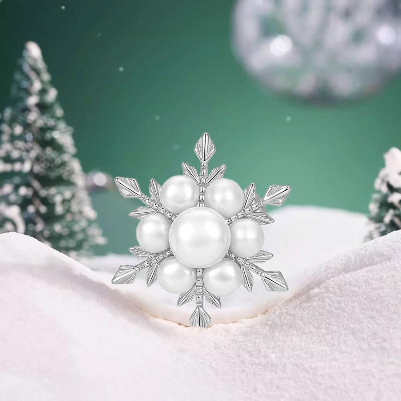 Elegantní brož ve tvaru sněhové vločky přináší dokonalou harmonii zimní krásy a nadčasové elegance. Stříbrné detaily v kombinaci s lesklými perlami vytvářejí šperk, který je jemný, sofistikovaný a ideální pro každou příležitost. Centrální perla je obklopena šesti menšími, což dodává broži jedinečný vzhled, inspirovaný dokonalostí přírody. Tento šperk je ideální pro ženy, které chtějí dodat svému outfitu nádech originality a elegance. Perfektně se hodí na zimní slavnosti, večírky nebo vánoční setkání. Svým decentním a zároveň poutavým designem skvěle doplní elegantní kabát, šaty nebo šálu. Brož je také výjimečným dárkem pro milovnice šperků a zimní atmosféry. Potěší každou ženu, která ocení precizní zpracování a univerzální design. Tento klenot přináší radost nejen svou krásou, ale také svou symbolikou – jemnost a jedinečnost každé sněhové vločky.