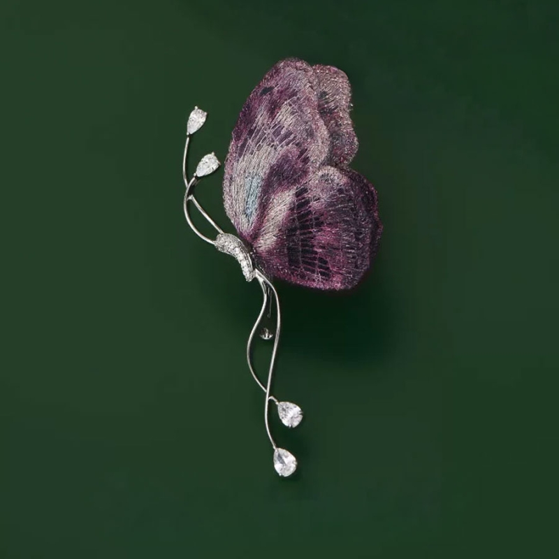Objevte jedinečný půvab luxusní brože inspirované křídly motýla – klenotu, který okouzlí svou lehkostí, jemností a poetickým laděním. Ručně tvořená křídla s hedvábnou strukturou připomínají dotek ranní rosy a pohybují se při světle jako skutečný motýl v letu. Elegantní silueta doplněná kapkami čirých krystalů zanechává dojem křehkosti a noblesy.Fialová barva křídel symbolizuje hlubokou intuici, vnitřní klid i kreativitu, zatímco stříbrné linie evokují jemnost a sofistikovanost. Brož se hodí ke slavnostním outfitům, ale také jako umělecký detail na saku, halence či šálu – kde se stává nejen doplňkem, ale i osobním vyjádřením stylu.Motýl jako symbol proměny a nové životní energie činí z této brože ideální šperk pro jarní nebo letní měsíce, svatby, výročí i důležité životní okamžiky. Je to šperk, který vypráví příběh o jemnosti, síle a kráse v každém detailu. 💡 Tip: Perfektní dárek pro ženu, která miluje jedinečné a jemně umělecké doplňky – ideální k narozeninám, ke Dni matek nebo jako poděkování.