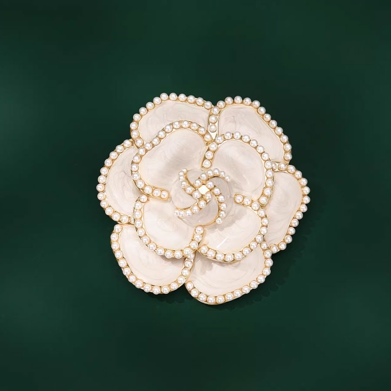 Luxusní brož v podobě bílé kamélie přináší do outfitu jemnost, čistotu a nadčasový styl. Perlové lemování jednotlivých okvětních lístků zvýrazňuje jejich symetrickou kresbu a dodává šperku výraz couture elegance inspirované francouzskou módou. Brož působí delikátně, ale zároveň dostatečně výrazně, aby se stala centrálním akcentem celého looku.Ikonická kamélie je symbolem ženskosti, oddanosti a obdivu – není proto náhodou, že se objevuje v nejvyšších patrech haute couture a stala se jedním z nejznámějších módních motivů vůbec. V tomto provedení je doplněna jemným zlatým tónem, který odlehčuje bílou barvu a podtrhuje sofistikovaný charakter šperku.Brož skvěle vynikne na klopě černého, krémového či pastelového saka, na jemných šatech i na kabátu. Díky své univerzální barevnosti ji lze kombinovat jak s perlami, tak se zlatými doplňky. Je to šperk, který povýší i minimalistický outfit a dodá mu kultivovanou eleganci. 💡 Tip: Ideální doplněk na společenské události, plesy, svatby či galavečery. Připněte ji na sako či hedvábné šaty a doplňte perlovými náušnicemi pro harmonický, noblesní efekt.