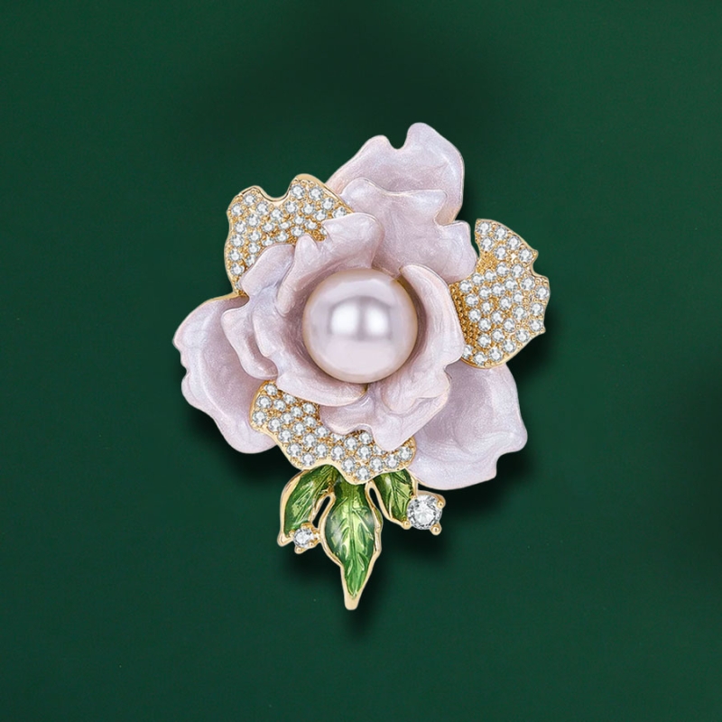 Tato elegantní brož ve tvaru rozkvetlého květu zaujme na první pohled svým jemně levandulovým odstínem a sofistikovaným zpracováním. Okvětní lístky v odstínu fialovorůžové působí étericky a romanticky, zatímco centrální perla v podobném tónu dodává šperku hloubku a osobitý charakter.Každý lístek květu je zdoben smaltovaným efektem s pudrově fialovým nádechem a jemnými zlatými konturami. Třpytivé zirkony v detailech podtrhují luxusní dojem a přidávají šperku oslnivý třpyt. Celek je harmonicky doplněn zelenými listy, které symbolizují svěžest a propojení s přírodou.Brož se výborně hodí jako slavnostní i sezónní doplněk – na sako, kabát či šaty. Její barevná kombinace působí neotřele a přitom elegantně, a díky kvalitnímu zpracování ji ocení každá žena s citem pro krásu a detail. 💡 Tip: Tato brož je jako stvořená pro večerní plesy, svatby nebo významné události – krásně doplní koktejlové šaty nebo formální róbu.
