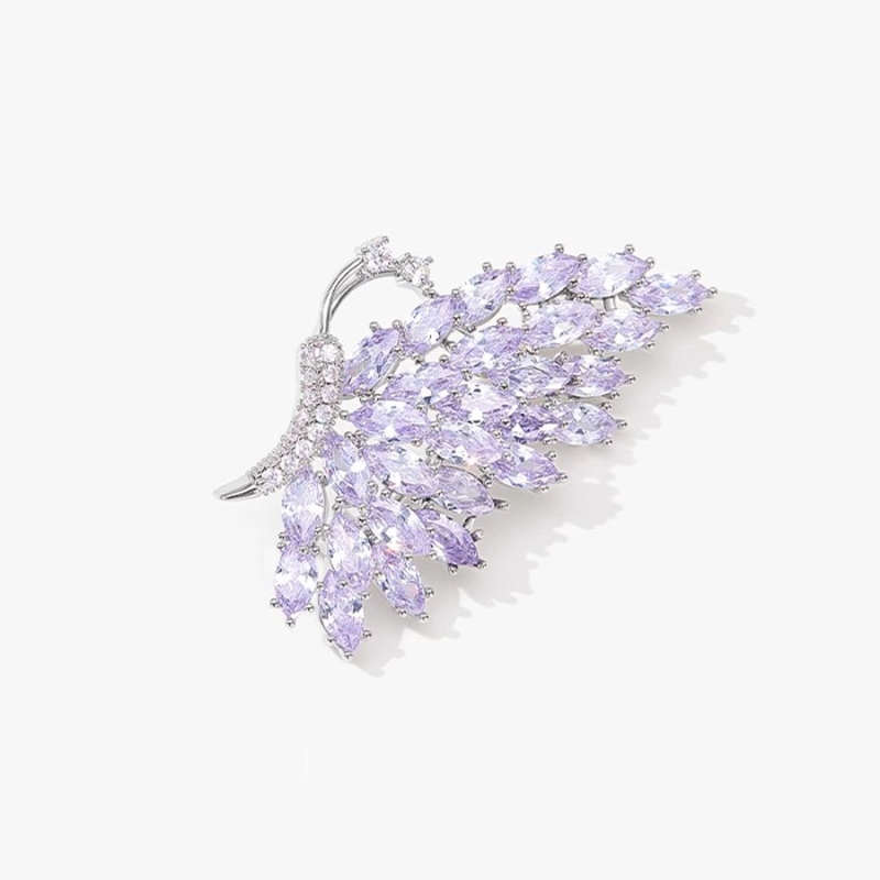 Tato elegantní brož ve tvaru motýla upoutá na první pohled svou jemností a leskem. Křídla tvořená fialovými zirkony ve tvaru broušených lístků působí nadýchaně a lehce, jako by se motýl právě chystal vzlétnout. Precizní zpracování a asymetrický design dodávají šperku osobitý charakter. Tělo brože je osazené drobnými čirými kamínky, které vytvářejí harmonický kontrast k jemným odstínům fialové. Stříbrný základ podtrhuje celkový chladný tón a zajišťuje univerzální kombinovatelnost s různými typy oděvů. Šperk je lehký, přesto výrazný, a vhodný i pro celodenní nošení. Brož se hodí pro slavnostní příležitosti, ale stejně tak dokáže zvýraznit i jednoduchý outfit při běžném nošení. Skvěle vynikne na saku, kabátu, halence nebo i jako ozdobný detail na šatech. Je ideální volbou pro ženy, které chtějí vyjádřit svůj osobitý styl s nádechem originality. 💡 Tip: Připněte brož na šikmo k výstřihu tmavého saku nebo koktejlových šatů – jemné fialové kamínky se nádherně rozzáří pod umělým světlem a vytvoří elegantní dojem, který zaujme i bez dalších doplňků.