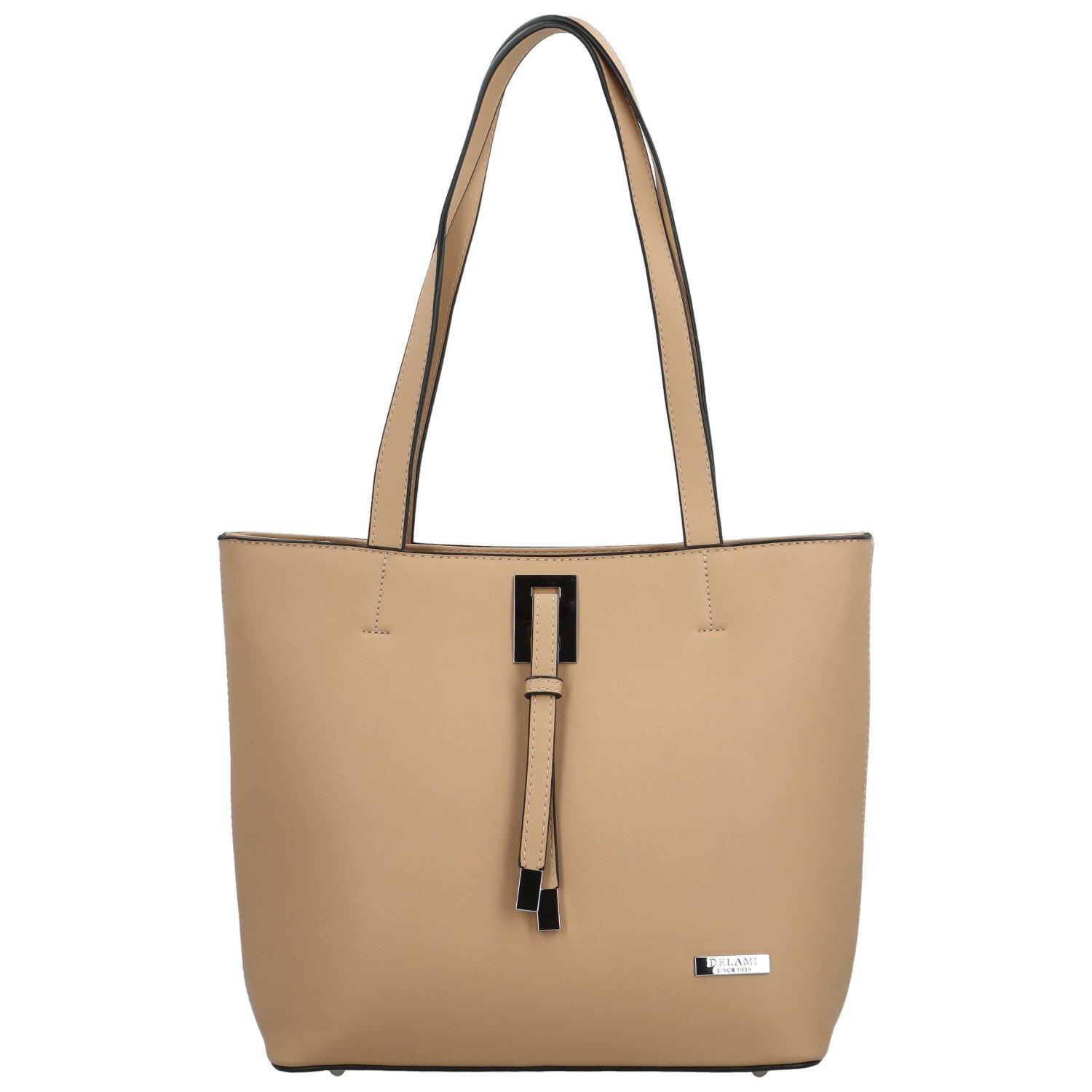 Tento materiál vám zajistí, že kabelka bude lehká, pevná a připravená na každodenní nošení. Tento kousek navrhli čeští návrháři tak, aby vás upoutala a vy se do ní ihned zamilovala. Přední stranu zdobí menší kovový obdélník z něhož vychází dva koženkové proužky s jemným prošitím a kovovým zakončením, společně s logem značky ve stříbrné barvě.