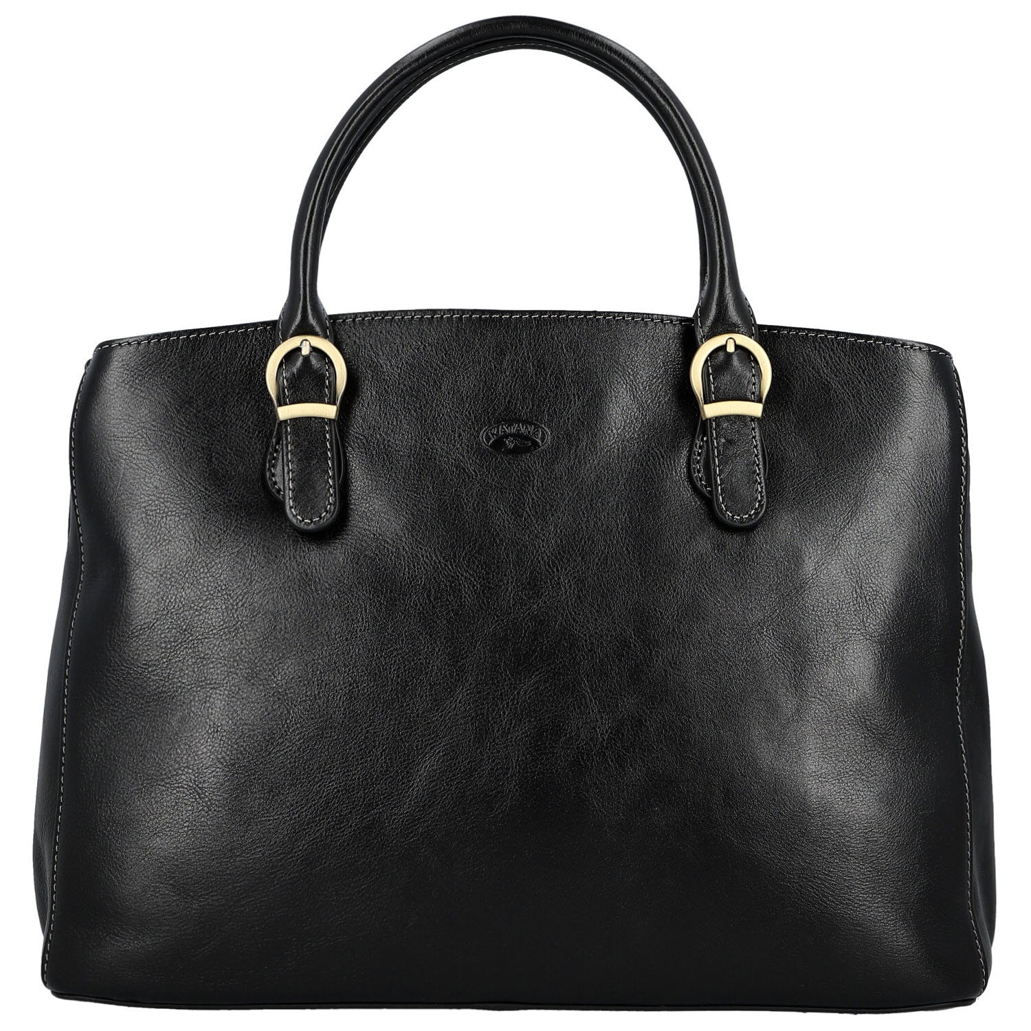 Je vyrobena z kvalitní pravé kůže s jemným leskem a pevným držením tvaru. Pevná ucha do ruky jsou uchycena pomocí stylových mosazných přezek, které kabelce dodávají sofistikovaný detail. Přední strana zůstává čistá a minimalistická, zdobená pouze jemně vyraženým logem značky Katana.