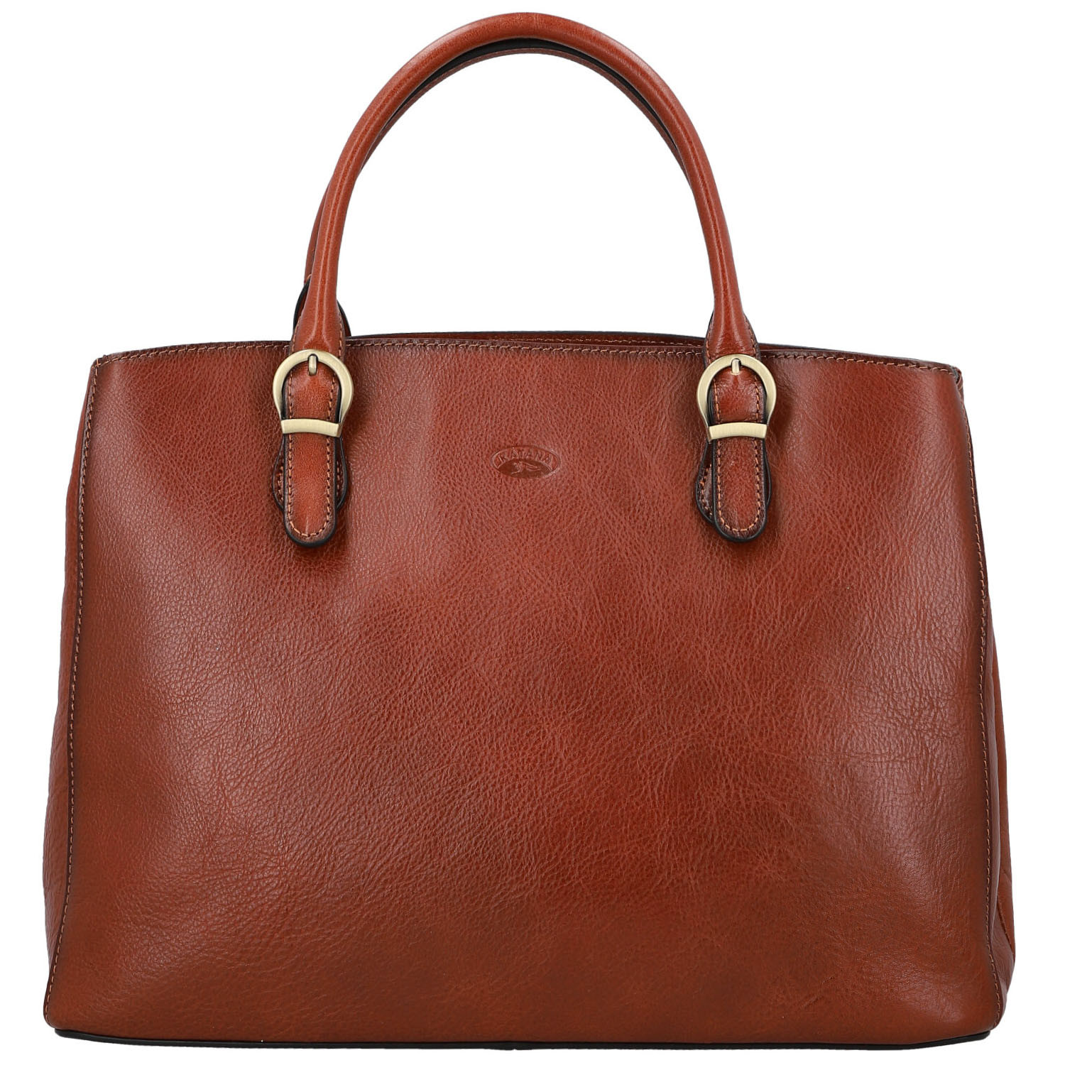 Je vyrobena z kvalitní pravé kůže s jemným leskem a pevným držením tvaru. Pevná ucha do ruky jsou uchycena pomocí stylových mosazných přezek, které kabelce dodávají sofistikovaný detail. Přední strana zůstává čistá a minimalistická, zdobená pouze jemně vyraženým logem značky Katana.