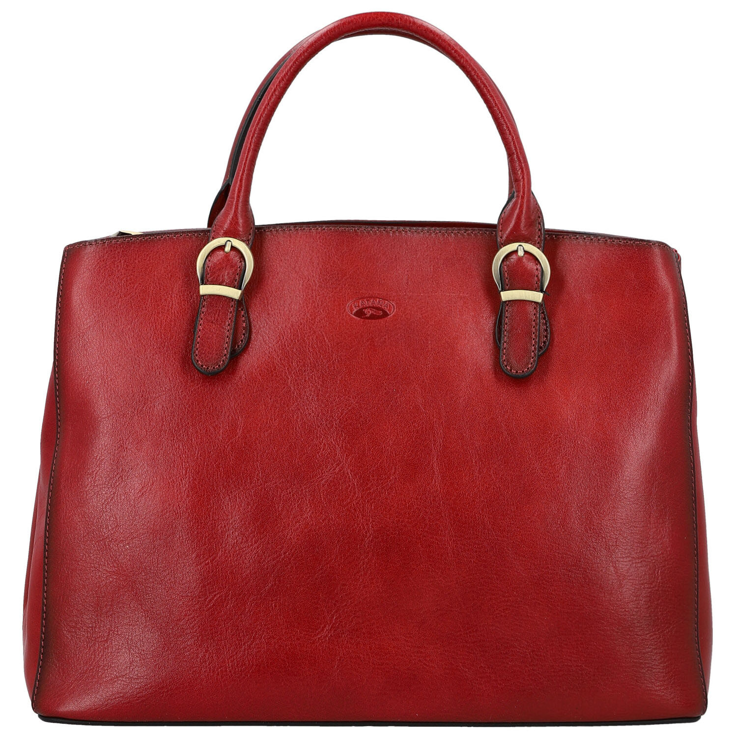 Je vyrobena z kvalitní pravé kůže s jemným leskem a pevným držením tvaru. Pevná ucha do ruky jsou uchycena pomocí stylových mosazných přezek, které kabelce dodávají sofistikovaný detail. Přední strana zůstává čistá a minimalistická, zdobená pouze jemně vyraženým logem značky Katana.