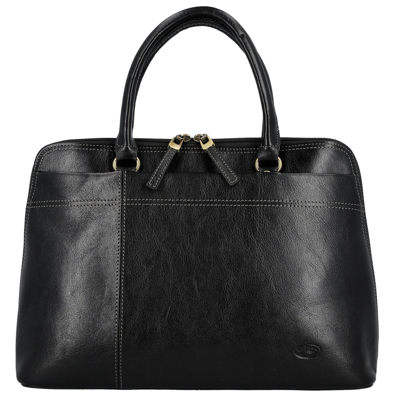 Je vyrobena z kvalitní, hladké pravé kůže, která se vyznačuje jemným leskem a pevnou strukturou. Hlavní kapsa na zip je prostorná a uvnitř najdete praktickou středovou zipovou přihrádku i menší kapsičky v podšívce pro přehledné uložení drobností.