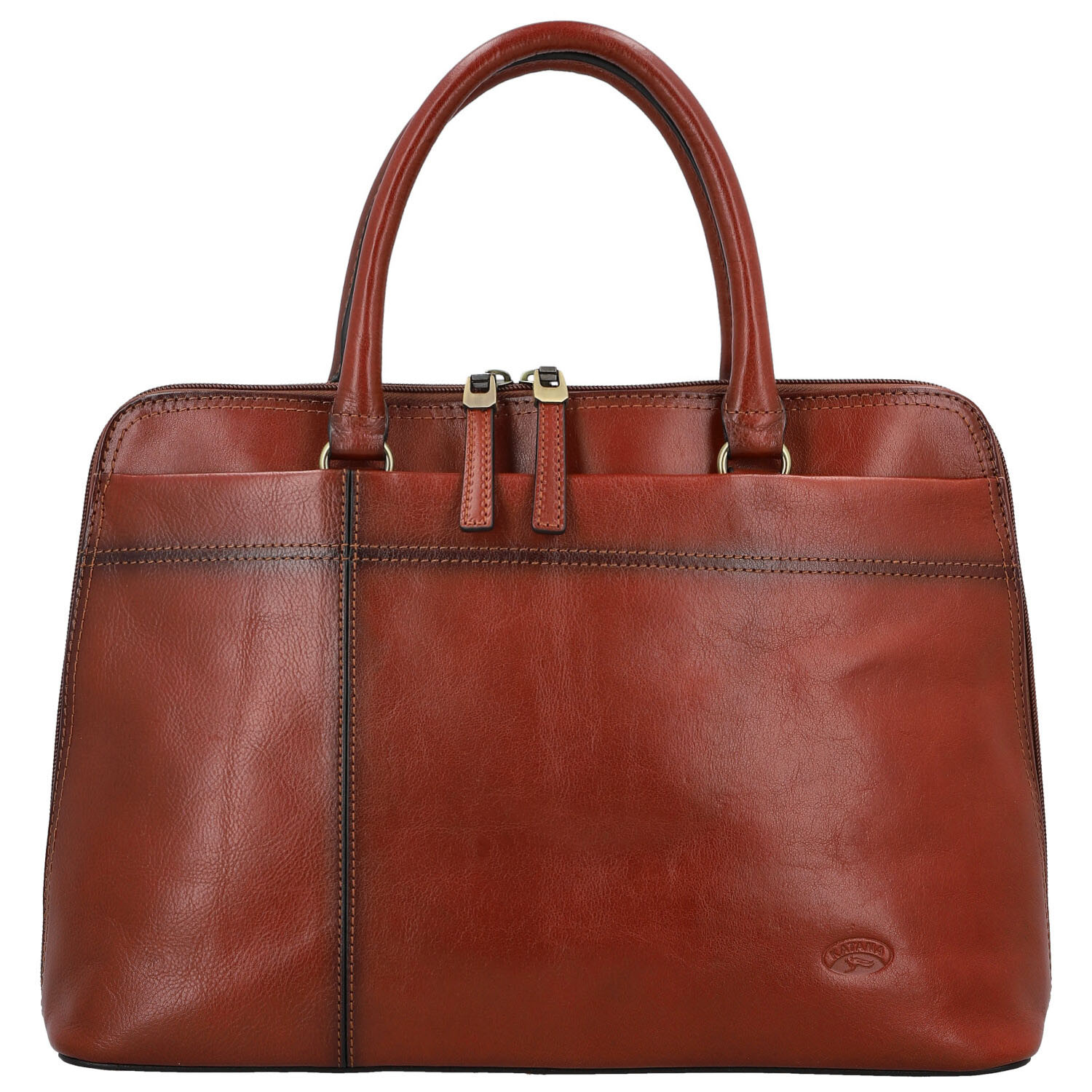 Je vyrobena z kvalitní, hladké pravé kůže, která se vyznačuje jemným leskem a pevnou strukturou. Hlavní kapsa na zip je prostorná a uvnitř najdete praktickou středovou zipovou přihrádku i menší kapsičky v podšívce pro přehledné uložení drobností.