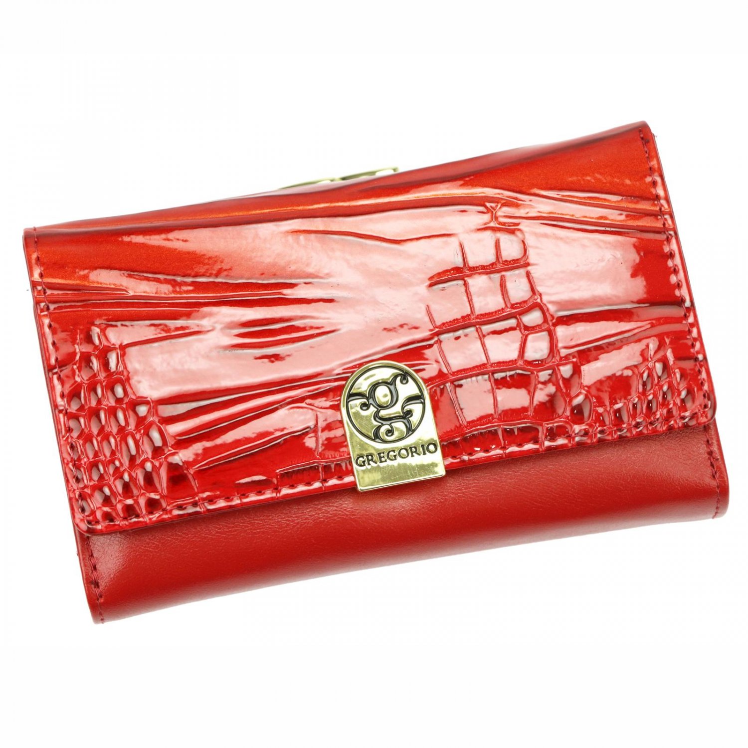 Tato luxusní dámská peněženka bude slušet dámám které mají rády eleganci. V zadní části má peněženka přihrádku na drobné v kovovém rámečku a v přední části se otevírá drukem a nabízí kapsičky na platební karty, doklady i papírové peníze.