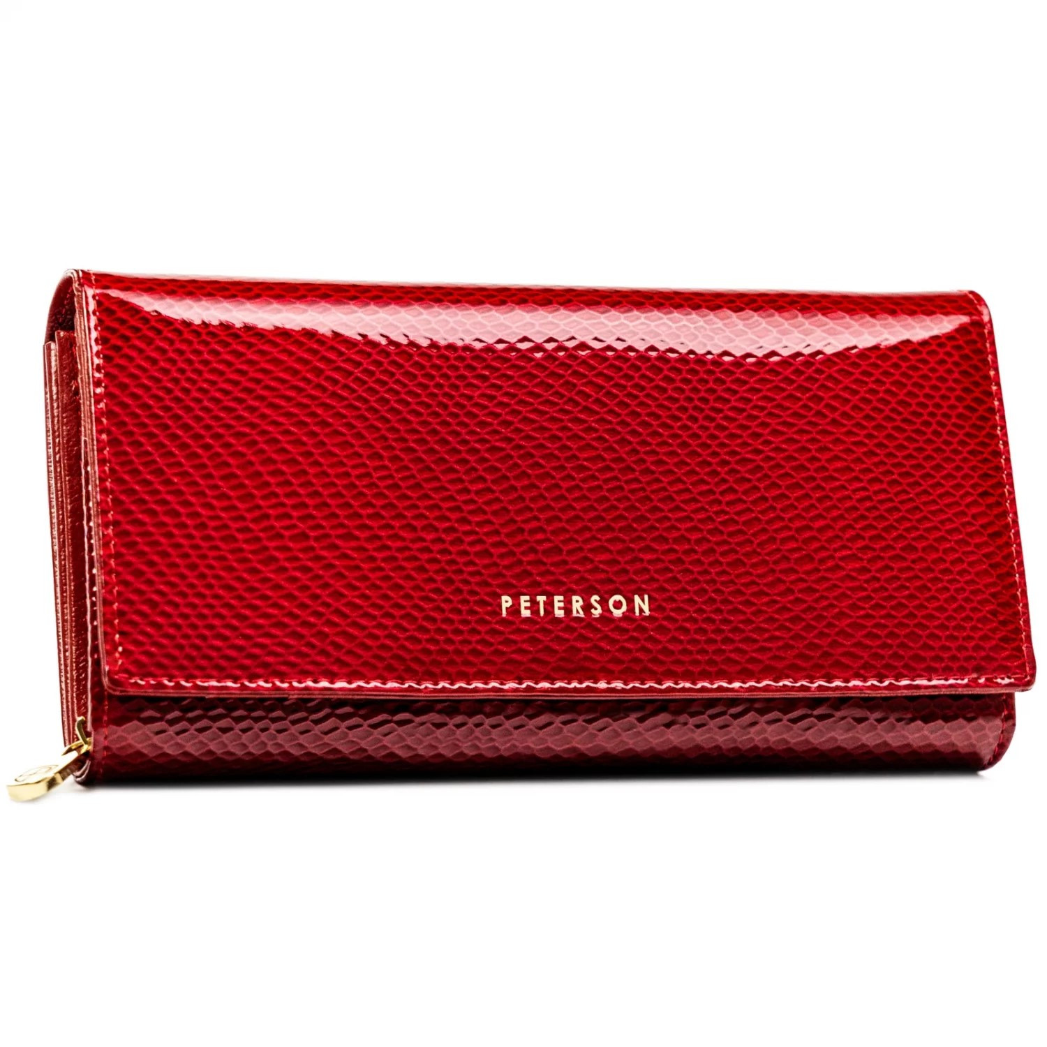 Přední stranu zdobí elegantní logo značky Peterson, které dodává sofistikovaný nádech. Po otevření velké klopy se odhalí prostorný interiér s přihrádkami na karty a papírové peníze, chráněný technologií RFID pro maximální bezpečí vašich dat.