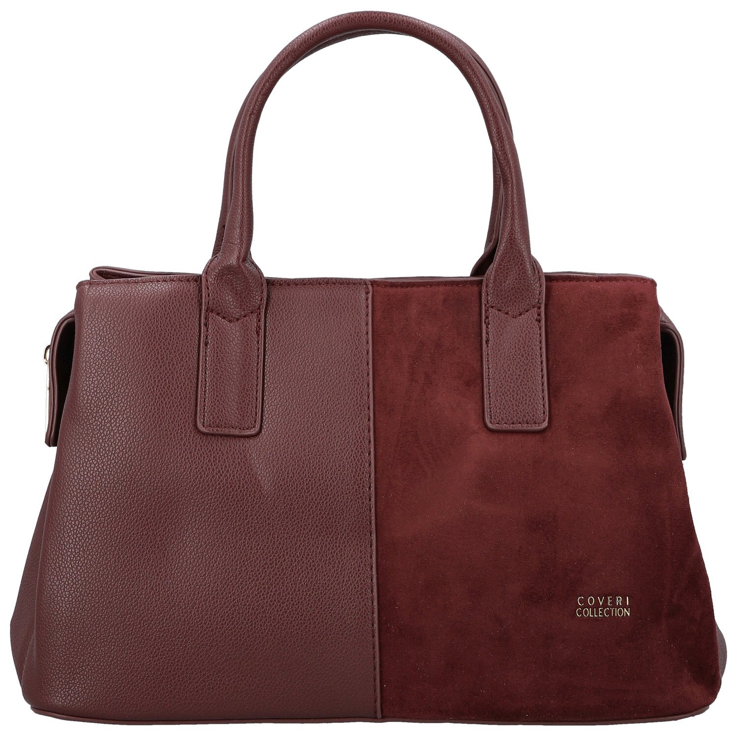 Přední strana zaujme jedinečným svislým prošitím, které dělí dva materiály - hladkou koženku a jemný semiš. Na semišové polovině je malé logo značky. Pevná koženková ucha perfektně padnou do ruky, zatímco přídavný koženkový popruh umožňuje pohodlné nošení na rameni.