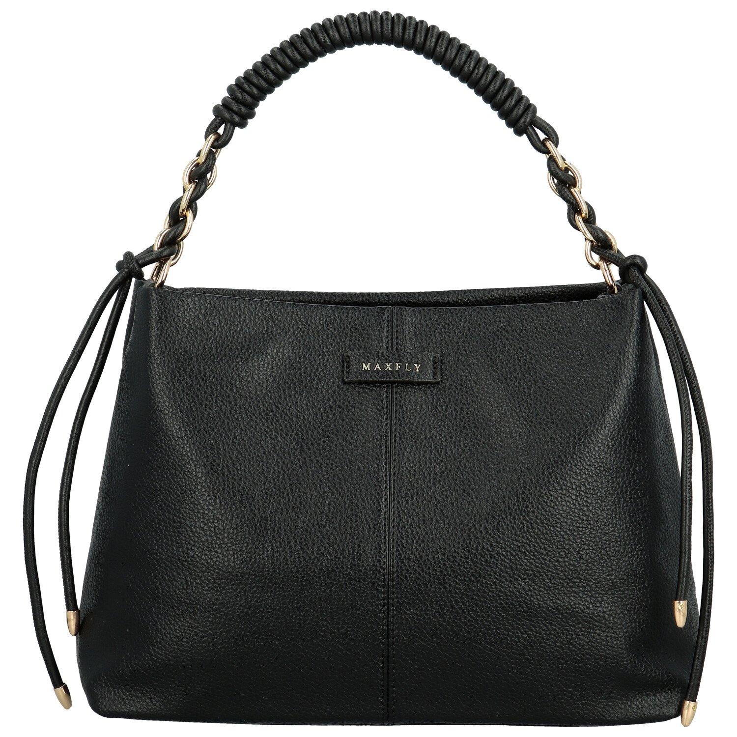 Kabelka má měkký tvar a jemně zrnitý povrch. Výrazným prvkem je designové ucho, které je tvořeno kombinací kovových oček a koženkového propletu, horní část je omotaná pro pohodlné nošení v ruce. Vzadu se nachází praktická zipová kapsa.