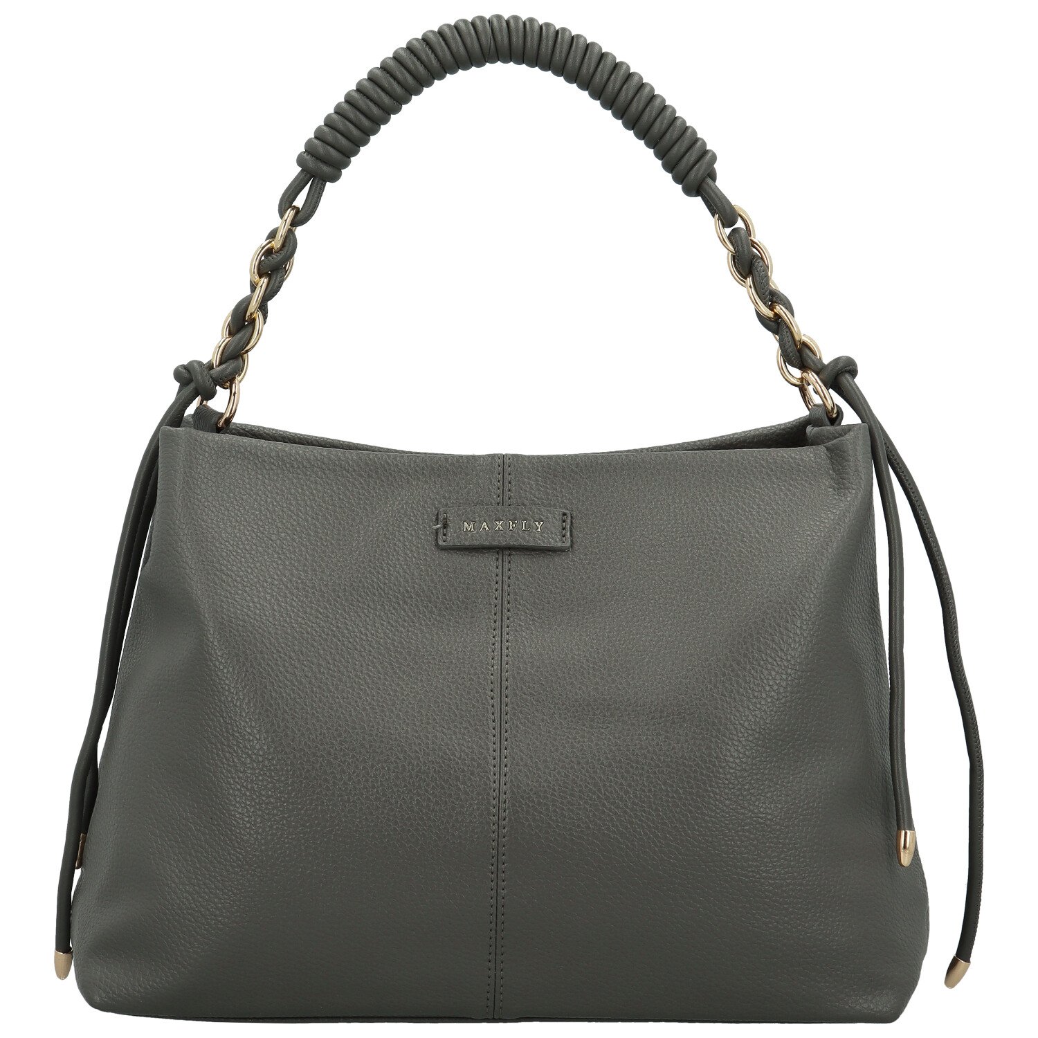Kabelka má měkký tvar a jemně zrnitý povrch. Výrazným prvkem je designové ucho, které je tvořeno kombinací kovových oček a koženkového propletu, horní část je omotaná pro pohodlné nošení v ruce. Vzadu se nachází praktická zipová kapsa.