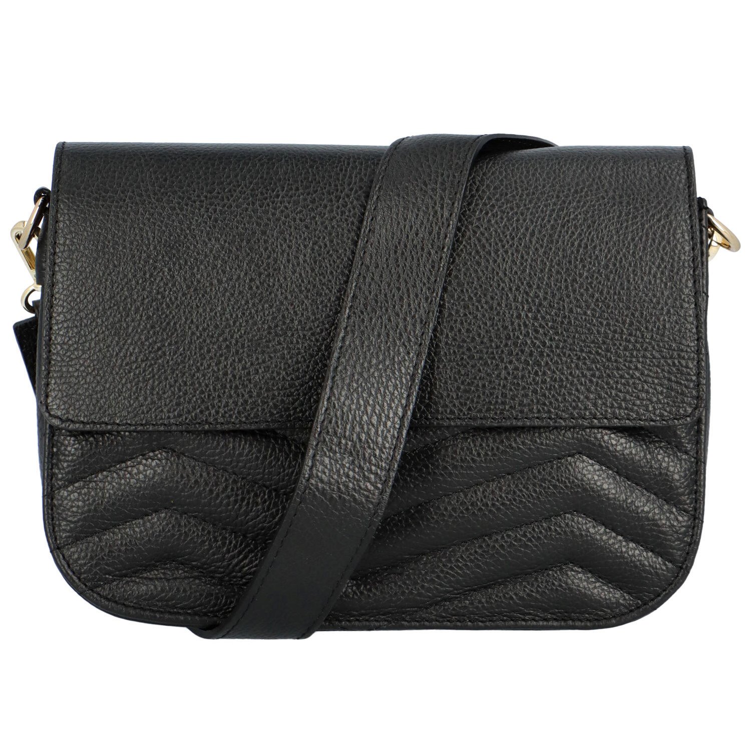 Praktický střih se ke spodní straně lehce rozšiřuje. Jednoduchá klopa je příjemným kontrastem pro prošití, které zdobí kabelku. Celkový vzhled je luxusní a taky univerzální, protože ji zkombinujete se sakem, stejně jako s ní doplníte šaty pro běžné nošení.