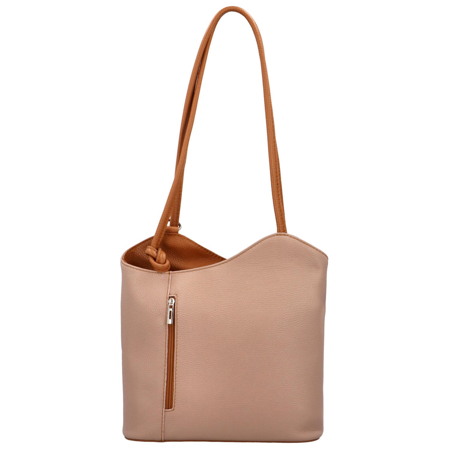 Nabízí hlavní kapsu na zip, uvnitř místo pro vaše důležité věci a vše, co nosíte při sobě. Uvnitř nechybí postranní přihrádky na drobnosti i větší kapsa na zip, která prostor dělí. Uši jsou dlouhé, pevné pro pohodlné nošení po celý den. Na přední i zadní straně najdete svislou zipovou kapsičku.