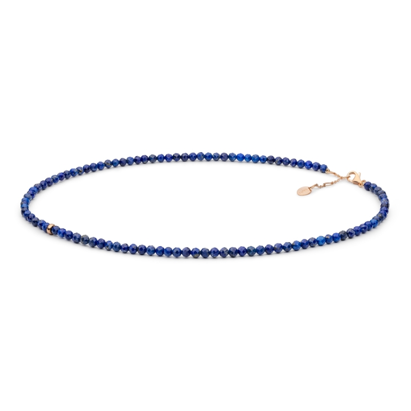 Pro všechny milovnice šperků vyrobených z drahých kamenů je v naší nabídce připravený jemný náhrdelník od Gaura Pearls. Náhrdelník zdobí stříbrný pozlacený korálek, přírodní 4-4.5 mm kameny Lapis Lazuli a stříbrný řetízek ryzosti 925/1000 s 14K růžovým pozlacením (1mic). Náhrdelník představuje spojení elegance a unikátnosti, jemnost a krása jsou jeho hlavní přednosti. Ozdobte se i vy tímto luxusním doplňkem a staňte se hvězdou společnosti. Délka náhrdelníku je 40 cm + 3 cm prodlužovací řetízek. Kameny Lapis Lazuli jsou již od dávných dob spojovány s krásou, štěstím a uklidněním. Lapis Lazuli je ochranný kámen proti kletbám a negativní energii. Odstraňuje negativní emoce z těla, chrání před zlem, čistí mysl, dodává vytrvalost a odvahu.