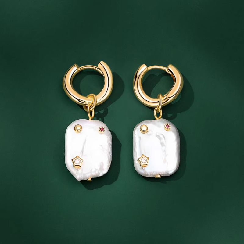 Tyto luxusní výrazné náušnice zaujmou na první pohled svou originální kompozicí, v níž se snoubí přirozená krása nepravidelné perly s jemnými zlatými detaily. Dominantní perlový prvek má organický tvar, který dodává šperku osobitost a neopakovatelný charakter. Drobné dekorativní prvky, včetně subtilního kamínku, působí jako jemný akcent, který celý design oživuje a podtrhuje jeho výjimečnost.Zlaté kruhové zapínání vytváří elegantní kontrast k matně lesklé struktuře perly a zároveň zajišťuje moderní a pohodlné nošení. Náušnice působí výrazně, ale stále si zachovávají vkus a harmonii. Jsou ideální pro ženy, které chtějí nosit šperk s osobností – takový, který není dokonale symetrický, ale právě v tom spočívá jeho kouzlo.Na uchu působí tyto náušnice sofistikovaně a přirozeně zvýrazňují rysy obličeje. Díky svému charakteru se stanou dominantním doplňkem outfitu, aniž by působily přehnaně. Jsou perfektní volbou pro ženy, které hledají originální luxus s jemným uměleckým nádechem. 💡 Tip: Tyto náušnice si zaslouží vyniknout – doporučujeme je kombinovat s jednoduchým oblečením, které nechá jejich výraznou podobu naplno zazářit.