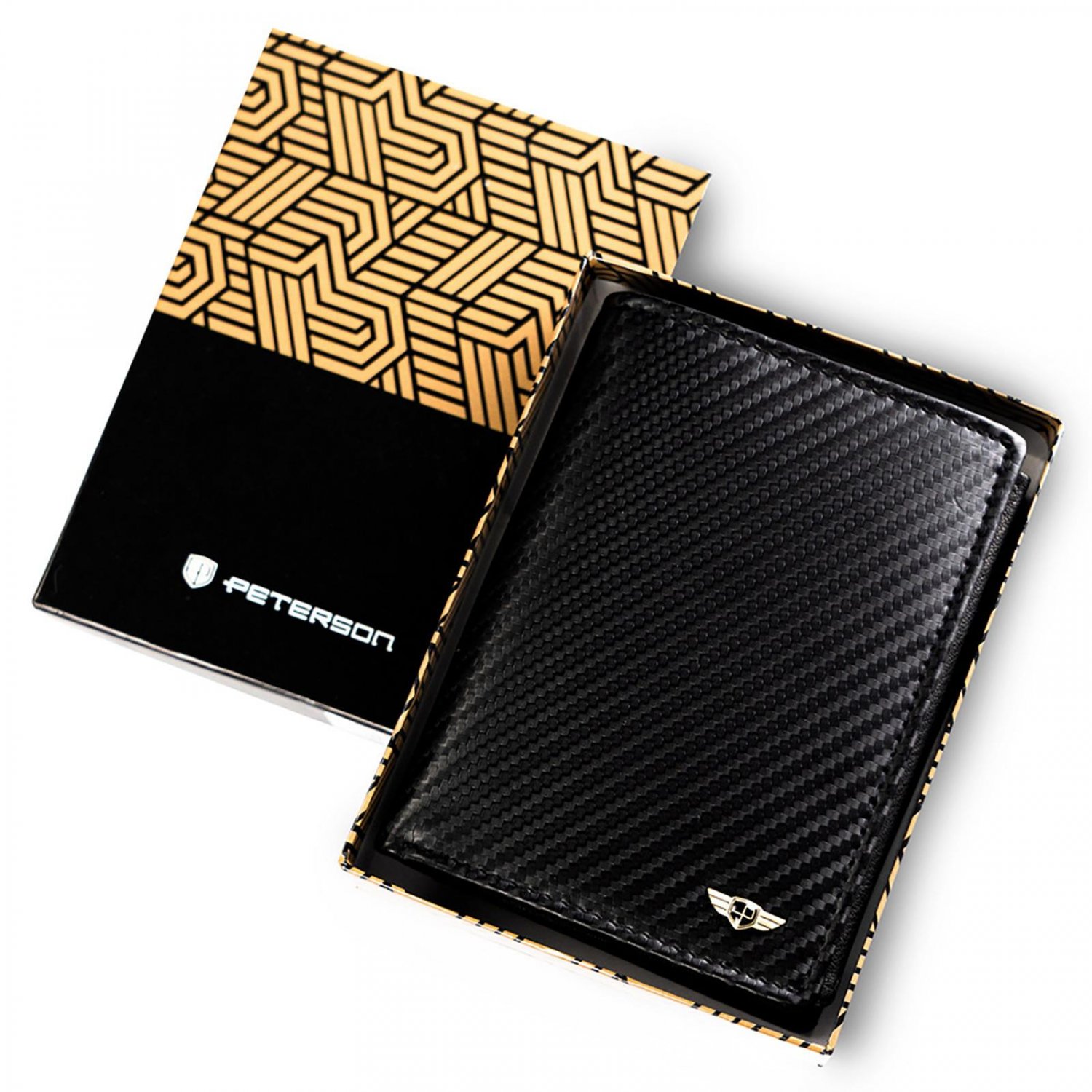 Luxusní kožená peněženka značky Peterson, která Vám bude dělat radost několik let díky kvalitní kůži, ze které je vyrobena. Peněženka je situována na výšku, její přední stranu zdobí malé logo.