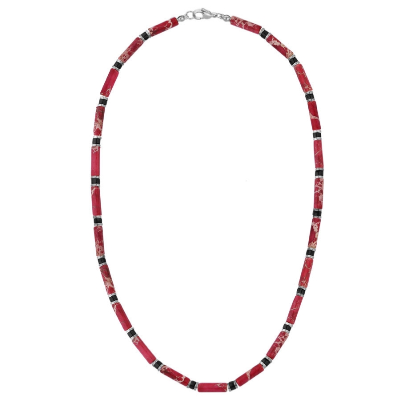 Tento pánský korálkový náhrdelník z červeného jaspisu je výrazným doplňkem pro každého, kdo se nebojí ukázat osobitý styl. Sytě červené válečky z jaspisu střídají lesklé korálky černého onyxu a jemné stříbrné disky z hematitu, které dohromady tvoří harmonický celek s lehce etnickým nádechem. Náhrdelník zaujme nejen svou barevností, ale i precizním zpracováním.Délka 45 cm zajišťuje pohodlné nošení v oblasti klíčních kostí a hodí se ke košilím i tričkům. Zapínání z chirurgické oceli přidává šperku moderní kontrast a zároveň zajišťuje dlouhou životnost i odolnost vůči opotřebení. Výběr minerálů navíc přináší do každodenního života sílu přírody – jaspis pro energii, onyx pro stabilitu a hematit pro uzemnění.Tento náhrdelník ocení muži, kteří si potrpí na detail a originalitu, aniž by působili příliš extravagantně. Skvěle se kombinuje s koženými doplňky a hodí se i jako výrazný prvek k minimalistickému outfitu. Dopřejte si styl, který vás bude doprovázet každý den. 💡 Tip: Zkombinujte tento náhrdelník s náramkem ze stejné série – červený jaspis a černý onyx vytvoří silnou vizuální linku, která působí uceleně a sebevědomě.
