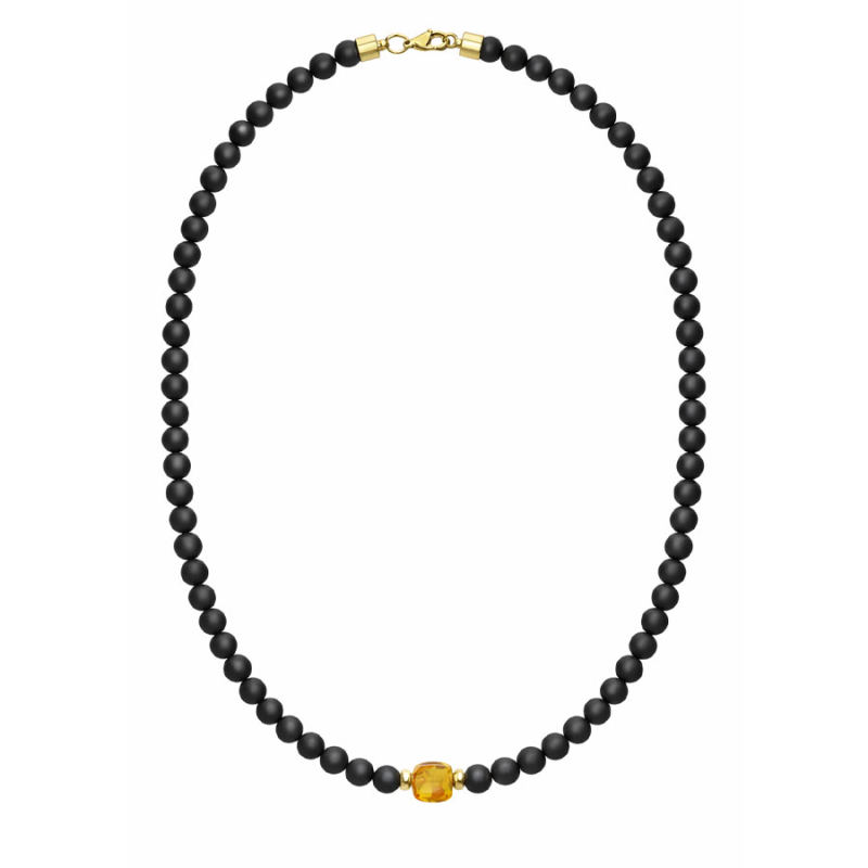 V jednoduchosti se skrývá síla – a přesně to vystihuje tento luxusní pánský náhrdelník z černého turmalínu, doplněný výrazným jantarovým prvkem. Kombinace hluboké černi a teplého zlatavého tónu působí nadčasově, mužně a zároveň velmi sofistikovaně. Každý detail je promyšlený tak, aby podtrhl osobnost nositele bez zbytečné okázalosti.Turmalín je po staletí symbolem síly, ochrany a vnitřní stability. V moderním pojetí se stává ikonickým prvkem pánské elegance – nenápadným, ale nepřehlédnutelným. Kontrastní jantar dodává šperku energii, teplo a osobitý charakter, díky kterému náhrdelník nepůsobí uniformně, ale jedinečně.Precizní zpracování a kombinace kvalitních materiálů, včetně chirurgické oceli, zajišťují nejen dlouhou životnost, ale i pohodlí při každodenním nošení. Tento náhrdelník není pouze doplňkem – je vyjádřením stylu, postoje a sebevědomí moderního muže. Skutečný must-have této sezóny. 💡 Tip: V kombinaci s tmavou košilí nebo sakem vytvoří sofistikovaný look vhodný na večeři, společenskou událost nebo rande.