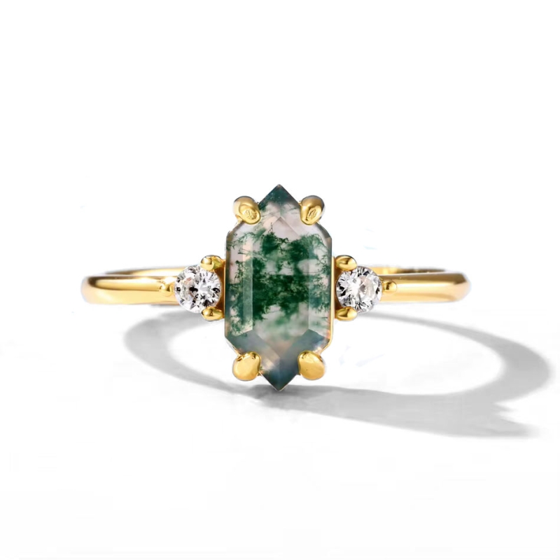 Objevte jedinečný šperk, který zaujme na první pohled – luxusní prsten s mechovým achátem v pozlaceném provedení. Tento elegantní design propojuje krásu přírody se sofistikovaným stylem a zajišťuje, že každý detail prstenu působí výjimečně. Středový kámen ve tvaru nepravidelného krystalu připomíná zelené větvičky ponořené v křišťálově čisté vodě.Mechový achát je výjimečný přírodní kámen, jehož charakteristickým znakem jsou jemné, zelené inkluze připomínající mech nebo větvičky. Každý kámen je originál, a právě díky těmto přírodním "nedokonalostem" působí tak autenticky a živě. Dvě třpytivé zirkonie po stranách dodávají prstenu jiskru a podtrhují jeho luxusní vzhled.Prsten je vyroben ze stříbra a je pozlacen pro ještě luxusnější efekt. Díky nastavitelné konstrukci se snadno přizpůsobí prstu – výchozí velikost je 53. Skvěle se hodí jak pro každodenní nošení, tak i pro speciální příležitosti, kdy toužíte po jedinečném šperku s osobitým charakterem. 💡Tip: Pokud hledáte šperk, který podtrhne vaši originalitu a zároveň vás propojí s přírodou, tento nastavitelný prsten s mechovým achátem je tou pravou volbou. Skvěle se hodí jako dárek, který osloví srdce každé ženy se smyslem pro eleganci a přírodní krásu.
