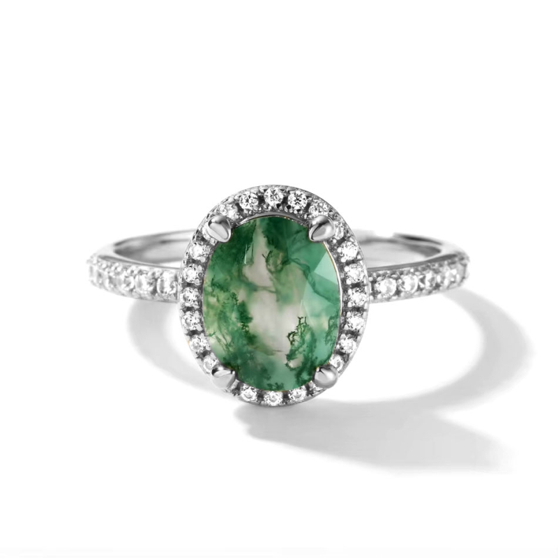 Luxusní stříbrný prsten s mechovým achátem je elegantním doplňkem pro ženy, které milují přírodní krásu a jemný lesk. Hlavní dominantou je oválný mechový achát, jehož jedinečné zelené kresby připomínají lesní krajinu ponořenou v mlze. Tento přírodní kámen zaujme svým autentickým vzhledem a neopakovatelným charakterem.Kolem centrálního kamene je jemně zasazena řada drobných třpytivých zirkonů, které zvýrazňují hloubku mechového achátu a dodávají celému šperku jiskřivý nádech luxusu. Stříbrné provedení dodává šperku moderní eleganci, která vynikne jak při slavnostních příležitostech, tak při každodenním nošení.Precizní zpracování a harmonická kombinace přírodních tónů z tohoto prstenu činí výjimečný doplněk, který podtrhne vaši osobnost a cit pro detail. Prsten je ideální volbou pro ženy, které chtějí nosit něco neobyčejného, co spojuje krásu přírody a luxusní design. 💡Tip: Prsten s mechovým achátem doporučujeme jako výjimečný dárek pro ženu s jemným vkusem, která ocení originalitu a propojení s přírodou.