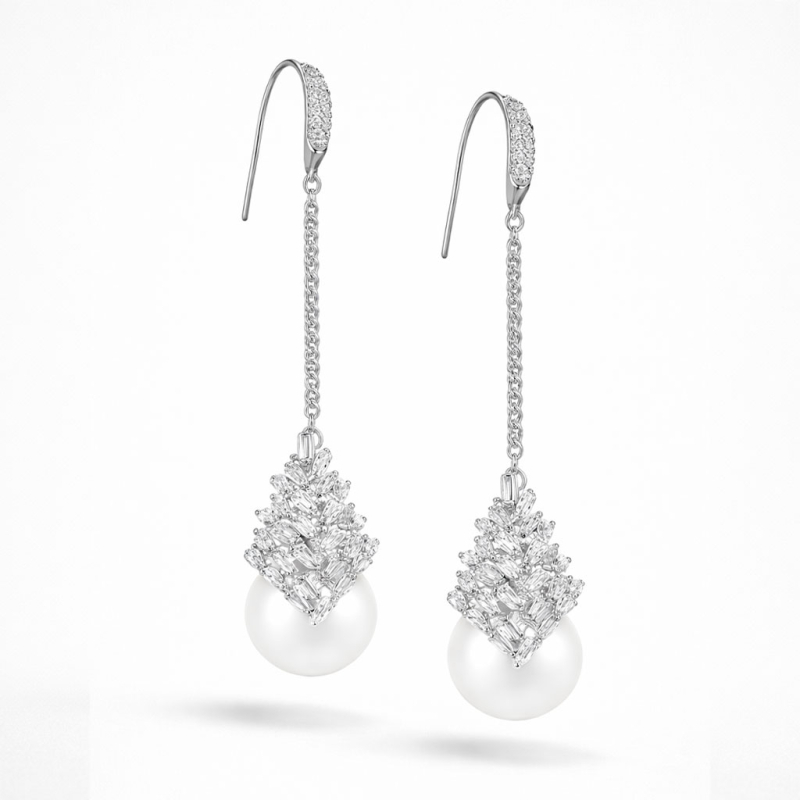 Lehkost pohybu a jemná hra světla – právě tyto vlastnosti definují tyto výrazné visací náušnice, které v sobě spojují moderní eleganci s nadčasovým půvabem perel. Precizně zasazené zirkony vytvářejí strukturovaný, třpytivý prvek, jenž plynule přechází do hladké perly, která dodává celému šperku klidnou a vyváženou energii.Dlouhá linie náušnic působí mimořádně lichotivě – opticky prodlužuje krk a zvýrazňuje přirozené rysy obličeje. Každý pohyb doprovází jemné zachycení světla, které podtrhuje luxusní charakter šperku, aniž by působil okázale.Tento model je ideální pro ženy, které hledají doplněk s charakterem – šperk, který není pouze ozdobou, ale i výrazem osobního stylu. Perfektně doplní večerní i elegantní denní outfit a stane se nepřehlédnutelným detailem. 💡 Tip: Ideální k odhalenému dekoltu a ramenům - dlouhé náušnice krásně doplní topy bez ramínek nebo šaty s hlubším výstřihem.