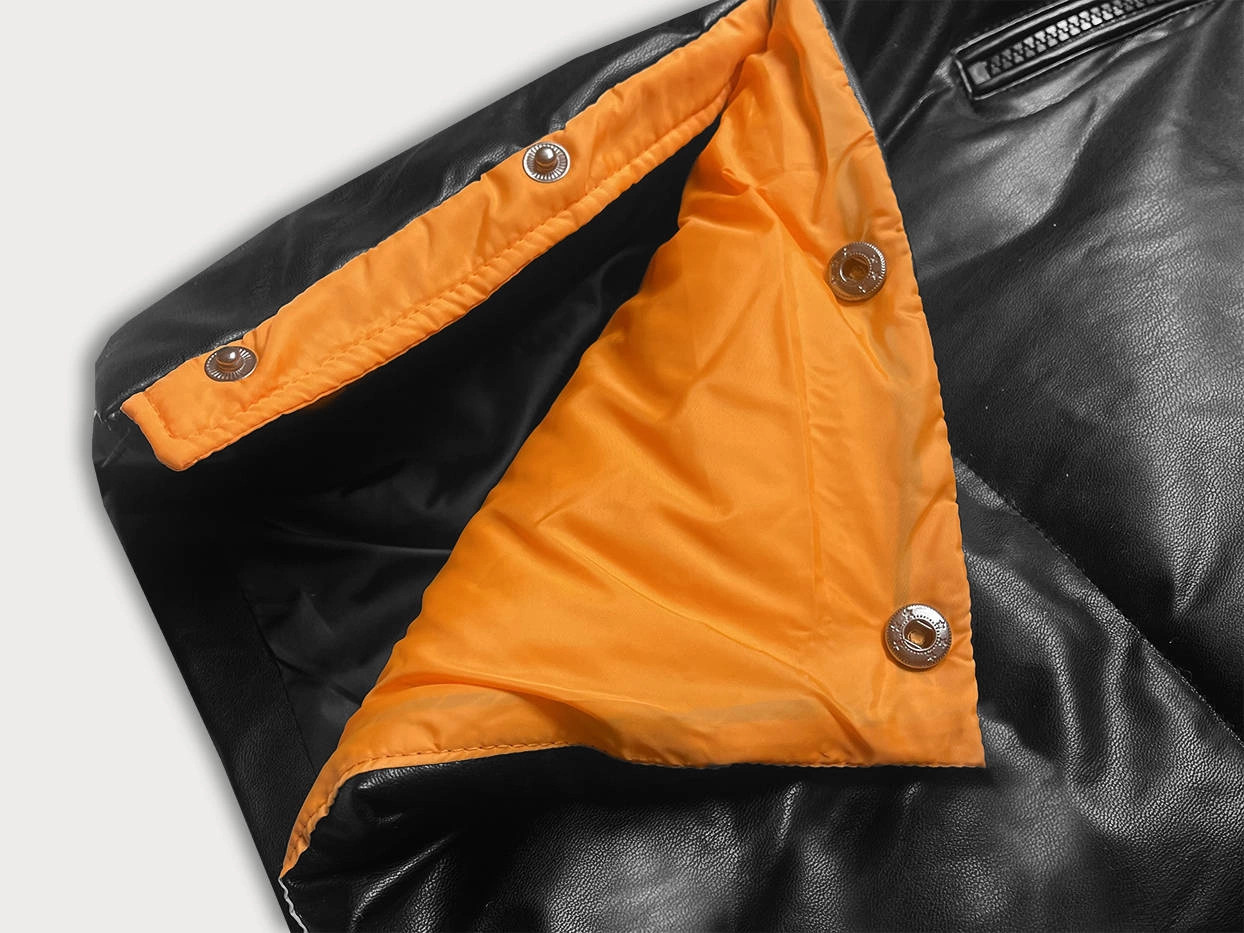 Černo-oranžová volná dámská bunda z eko kůže (ag6-20b) odstíny černé 52