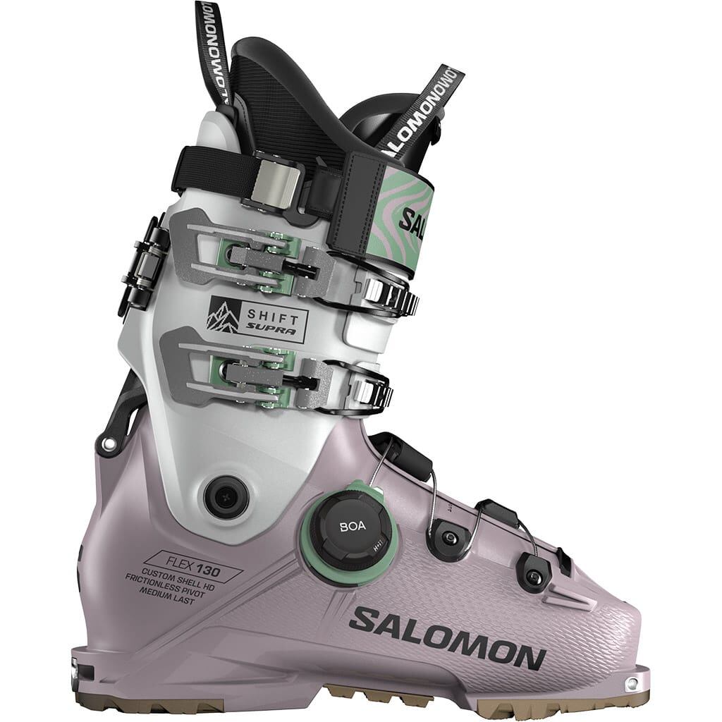 Lyžařské boty Salomon Shift Supra BOA® 130 jsou určeny pro freeridery, kteří touží po přesnosti a přizpůsobivosti, a posouvají hranice pohodlí a výkonu. Díky pokročilému systému BOA® Fit System a technologii EXOBELT™ poskytují energickou a citlivou jízdu v každém terénu a umožní vám s jistotou překonávat své hranice. Hmotnost lyžáky: 1930 G Šířka: Medium Kompatibilita a normy: Gripwalk – Dospělí Úroveň tréninku: Pokročilý Tuhost: Tvrdé Hodnota flexe: 130 Vlastnosti a Materiály Nastavení: Speciální dámská manžeta (22,5 až 24,5) Plně servisovatelné: Přezky, ozubený hřeben, popruh a zvětšený ohebný kloub lze odšroubovat, což usnadňuje demontáž boty a umožňuje snadný přístup ke všem dílům při úpravě boty na míru. Skořepina boty: Custom Shell™ HD: Proces Custom Shell™ HD umožňuje přizpůsobit spodní skořepinu nebo manžetu boty během 10 minut, zatímco tenkostěnná konstrukce a nové materiály umožňují přiblížení nohy ke skořepině. Exobelt: Pevné textilní/plastové zapínání a BOA® Fit System poskytují pozoruhodné držení paty a zabraňují tvorbě puchýřů při výstupech. Zároveň zajišťují přesnost a sílu při sjezdech. Podrážka Midgrip: Podrážka contaGRIP® mezi špičkou a patou a podrážky GripWalk zlepšují přilnavost boty v náročném terénu, jako jsou kameny, led a jiné nerovné povrchy. Polyuretan: Materiál s konstantní hustotou, který zajišťuje dokonalé obepnutí, spolehlivou progresivitu a dobrý přenos sil. Integrované Tech inserts: Ve skořepině jsou integrovány low-tech inserty, které jsou kompatibilní se skitouringovým vázáním, takže při stoupání můžete využít spolehlivý a přímý přenos sil. Manžeta: PowerWedge: Malá vložka Power Wedge, která je součástí mechanismu FreeSpine, zvyšuje rozsah pohybu při odemknutí a zvyšuje přenos energie při zamknutí pro autentický sjezdový zážitek. Ohebné klouby bez tření: Polymerová pouzdra zajišťují zcela přirozenou rotaci manžety pro snadný pohyb při výstupu. Mechanismus Twinlock: Tento přepracovaný mechanismus SkiWalk a FreeSpine nabízí širokou škálu pohybu a progresivní flexi sjezdových bot. Horizontální zapínací poloha upřednostňuje bezpečnost a dlouhou životnost. Polyolefin: Odolnější materiál, který zároveň zajišťuje lehkost a stabilitu. Freeridový skelet: Tato extrémně pevná plastová lišta na zadní straně boty spojuje manžetu a spodní část skořepiny a dodává vašemu freeridovému pohodlí úroveň spolehlivé sjezdové progresivity. Vložka: 2 stélky Sensitive: Tato předtvarovaná stélka umožňuje přesné vedení lyže a stabilitu nohy díky speciální tuhé patní vložce a vrstvení pěny zaměřené na výkon. Botička: My Custom Fit™ Freeride 4D Race: Tato předtvarovaná botička nabízí přesnou oporu celého chodidla. Elastická oblast špičky, materiál Talyn® na vnější straně a přizpůsobitelný jazyk nabízejí dokonalý fit pro freeride. Konstrukce podšívky: Funkce Walk Poutka na tkaničky Vložky: Předmontované Gripwalk ISO 23223: Podrážky GripWalk jsou předmontované a jejich specifický tvar zvyšuje pohodlí a přilnavost při chůzi bez ohledu na podmínky. Utažení: 1 Šroubovaný BOA® Fit System: BOA® Fit System zajišťuje přesné mikronastavení obepnutí nohy. Je navržen tak, aby fungoval i v těch nejnáročnějších podmínkách. Nabízí také vynikající držení paty a přechod z hrany na hranu. 2 hiking hook 2 šroubované hliníkové přezky: Dvě šroubované přezky, které lze snadno odstranit za účelem individuálních úprav a oprav bot. BOA® Fit System – co to je? BOA je moderní systém zapínání bot, který nahrazuje klasické přezky. Funguje pomocí: otočného kolečka (dial): utažení nebo povolení boty jediným pohybem, i v rukavicích, ocelového lanka s mikro-nastavením: rovnoměrně rozkládá tlak po celé noze, bez nepříjemných tlakových bodů, snadného uvolnění: stačí kolečko povytáhnout a bota se okamžitě povolí. Specifikace: Flex: 130 Šířka skeletu: 100mm Hmotnost: 1930g (Pár: 3860 g)