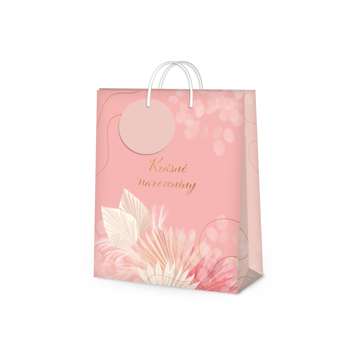 Luxusní papírová dárková taška se zlatou ražbou a něžným motivem je ideální na zabalení narozeninového dárku pro ženy. Rozměry: 17,8 × 9,8 × 22,9 cm