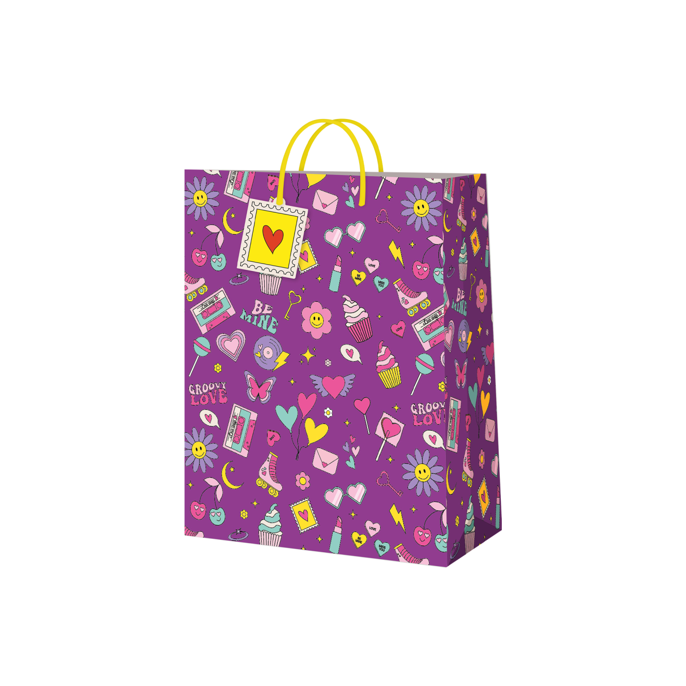Papírová dárková taška s neonovými prvky a holčičím vzorem pro všechny mladé slečny. Rozměry: 17,8 × 9,8 × 22,9 cm