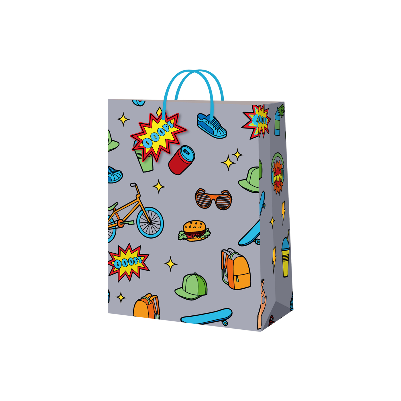 Papírová dárková taška s neonovými prvky a klučičím vzorem pro všechny mladé muže. Rozměry: 17,8 × 9,8 × 22,9 cm