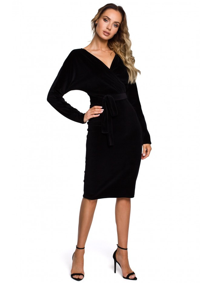 Domů Oblečení a móda Dámské oblečení Dámské šaty M561 Sametové zavinovací šaty - černé EU XXL