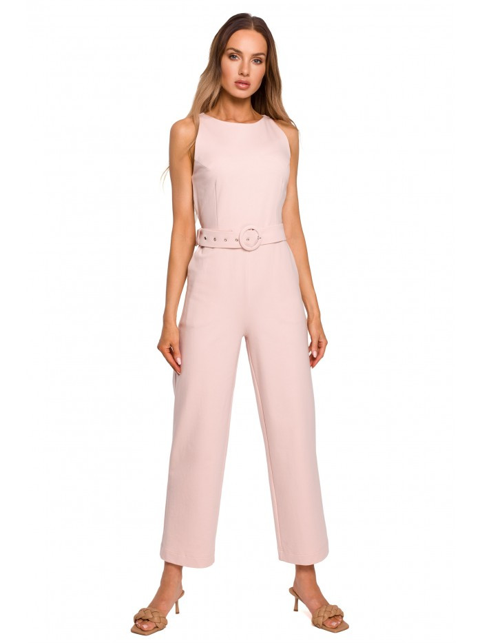 Domů Oblečení a móda Dámské oblečení Dámské halenky a košile M679 Overal bez rukávů s páskem a sponou - cukrově růžový EU XL